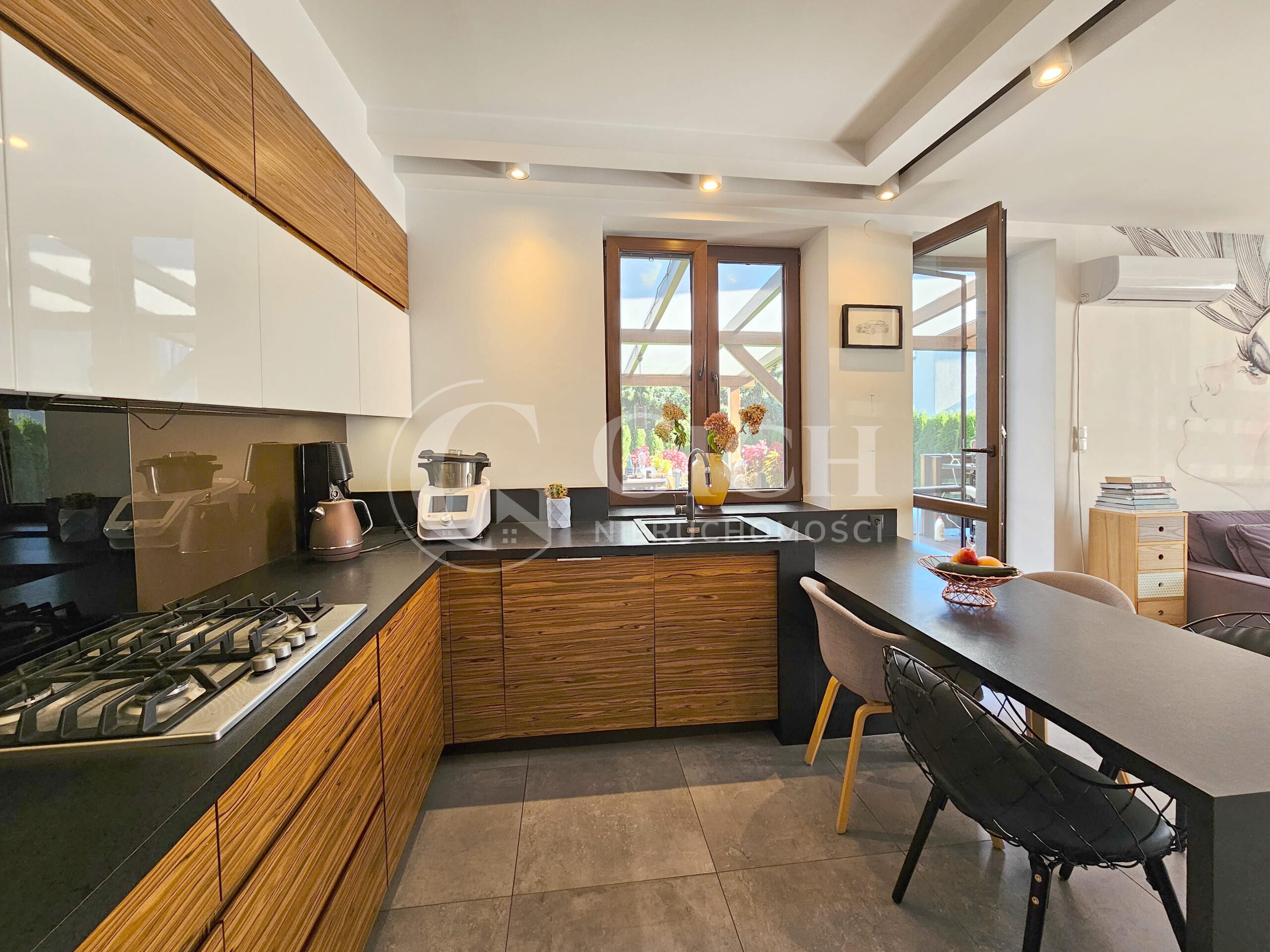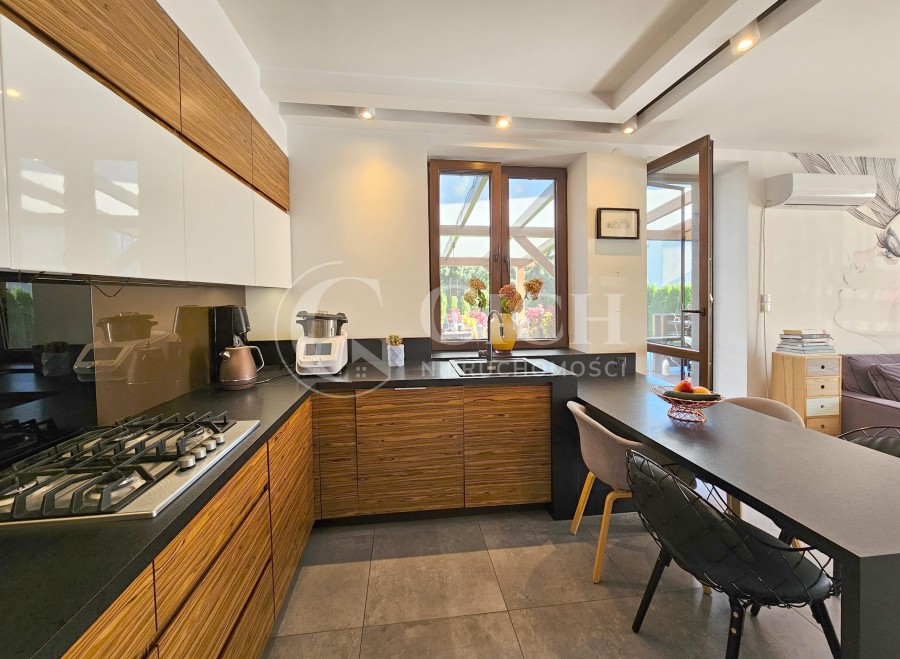 Dzięki zastosowaniu paneli fotowoltaicznych na dachu, dom jest przyjazny dla środowiska i energetycznie efektywny. Ogrzewanie zapewnia energooszczędny piec gazowy, co przekłada się na niższe koszty eksploatacji.
