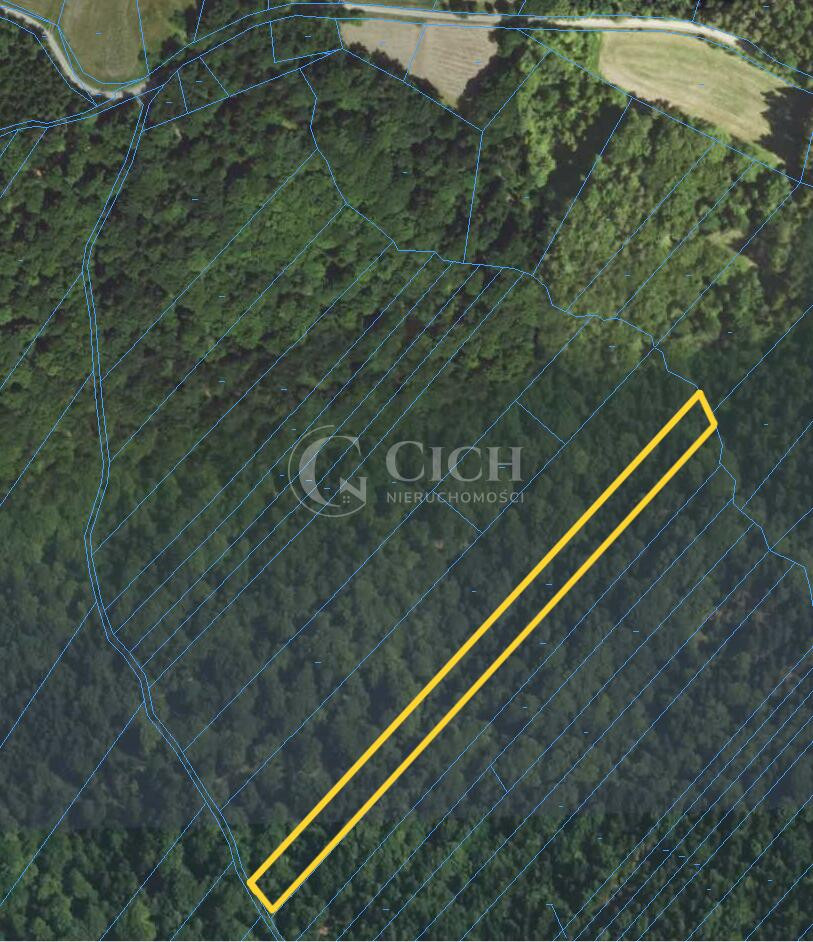 Teren ma kształt wydłużonego prostokąta o szerokości ok.20 m i głębokości ok.352 m, z dostępem do drogi leśnej, co zapewnia bezpośredni dojazd.