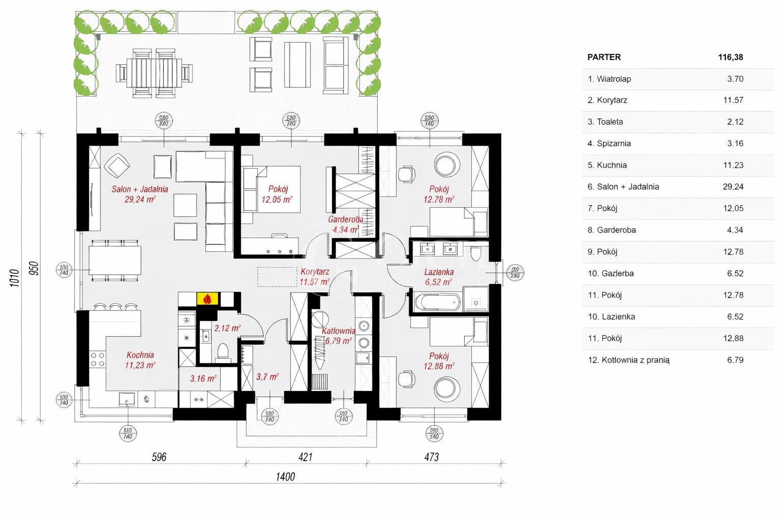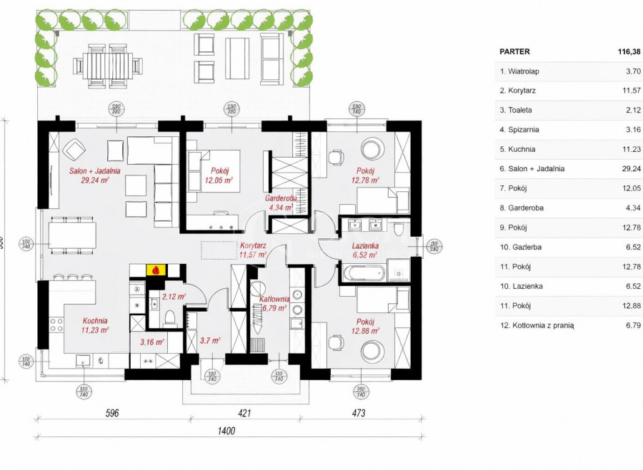 - kotłowni, korytarza i wiatrołapu.