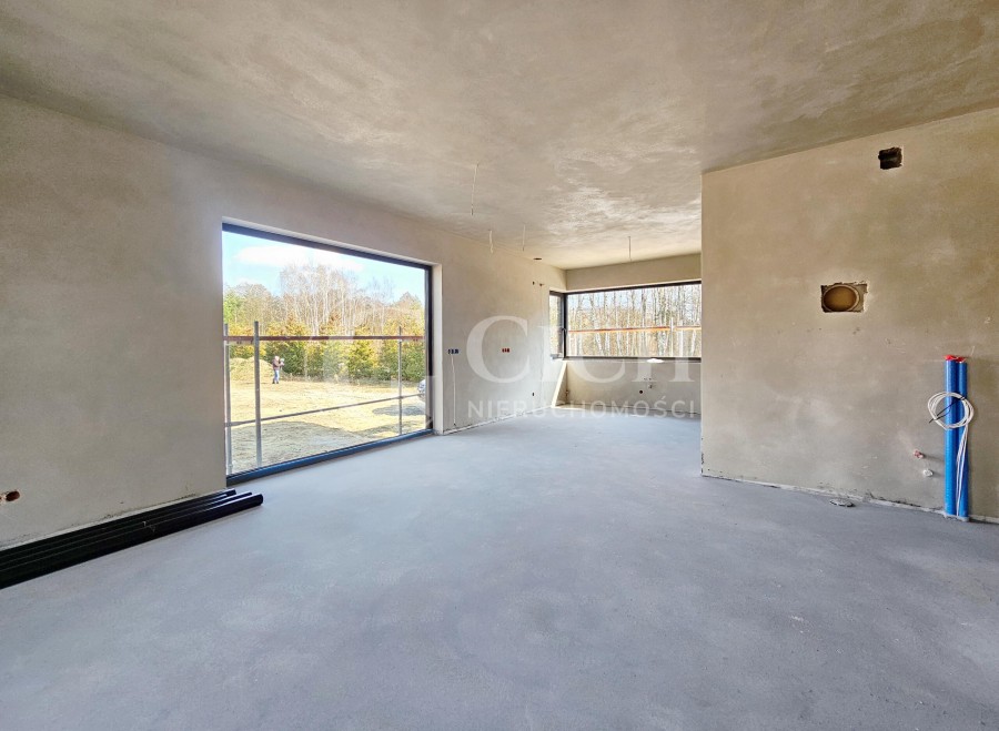 - przestronnego salon z jadalnią i wyjściem na taras z widokiem na las,