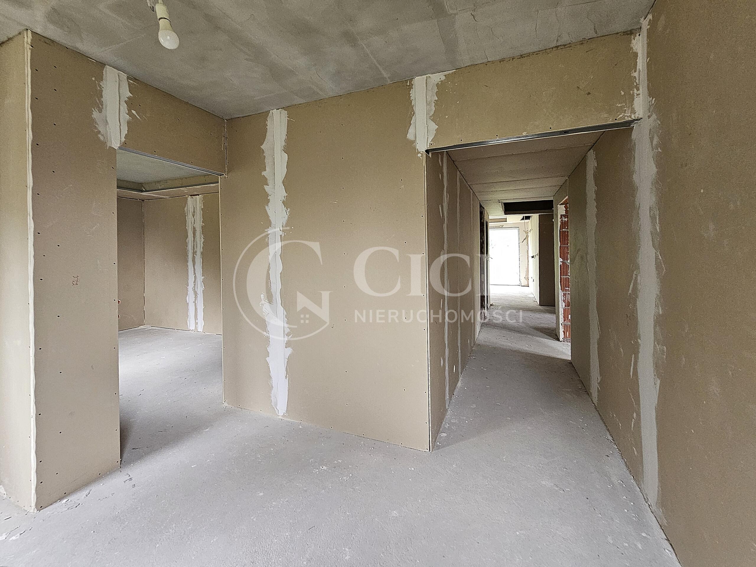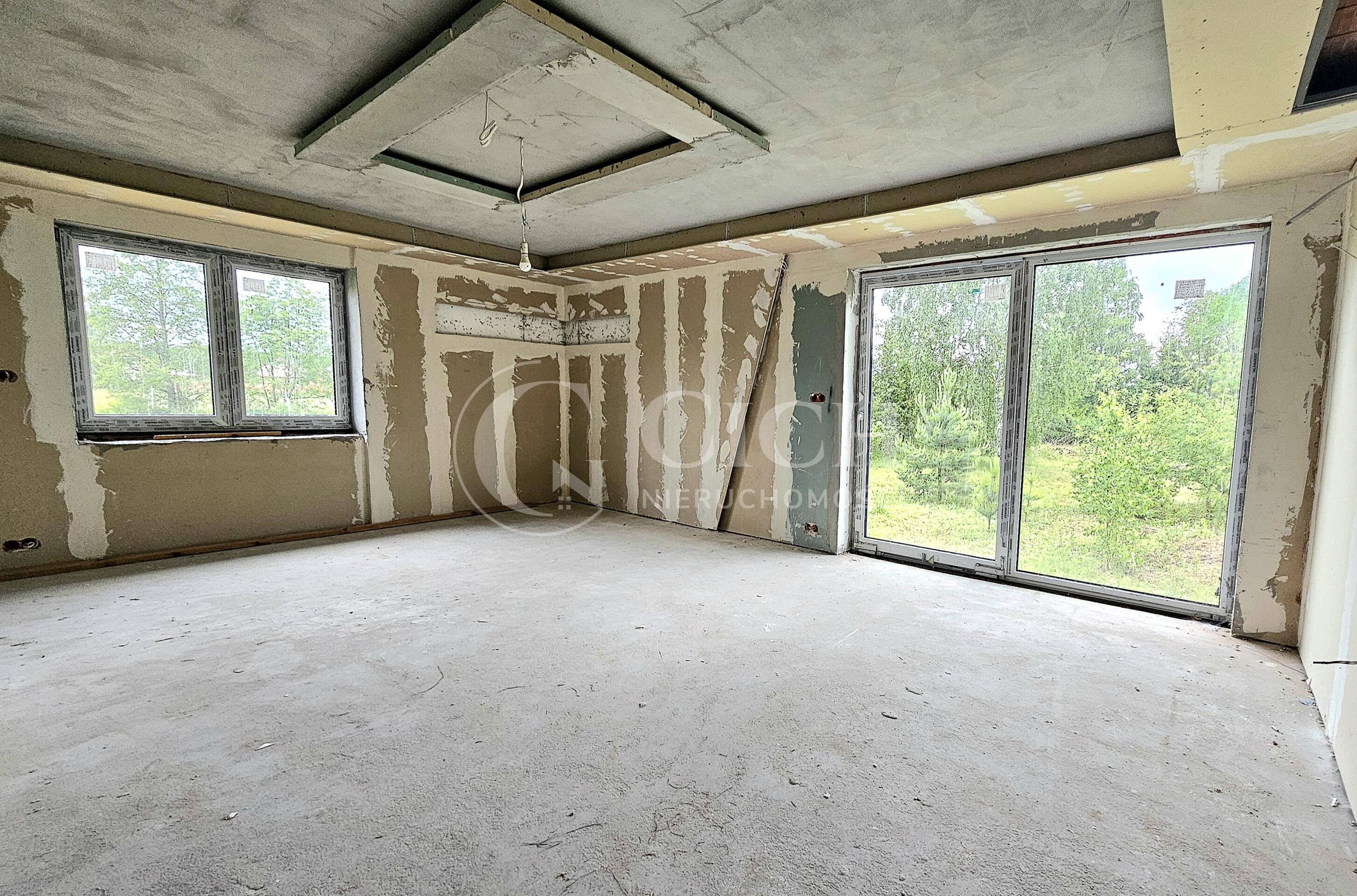 Dom w stanie deweloperskim usytuowany na działce o powierzchni 1547 m2 z bezpośrednim dostępem do drogi publicznej.