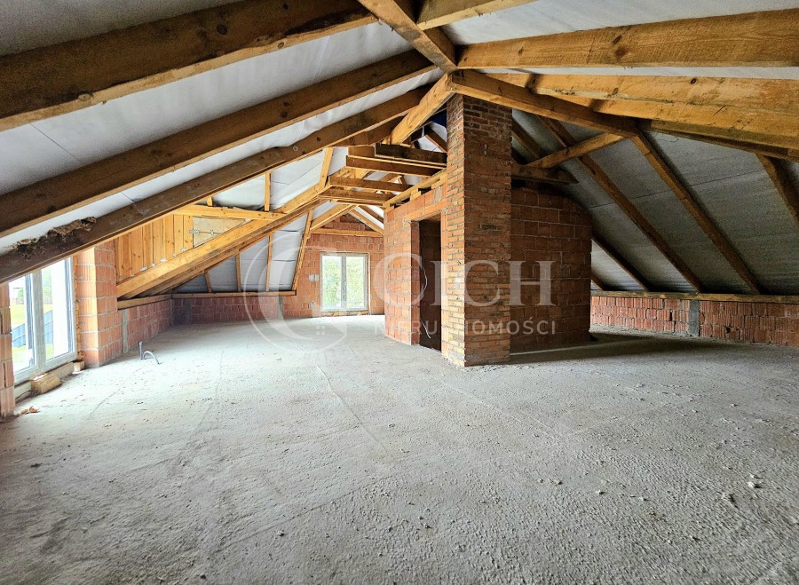 Na poddaszu o powierzchni około 116 m2 mamy przestrzeń typu OPEN SPACE. Obecnie brak ścianek działowych. Dwa wyjścia na balkony.