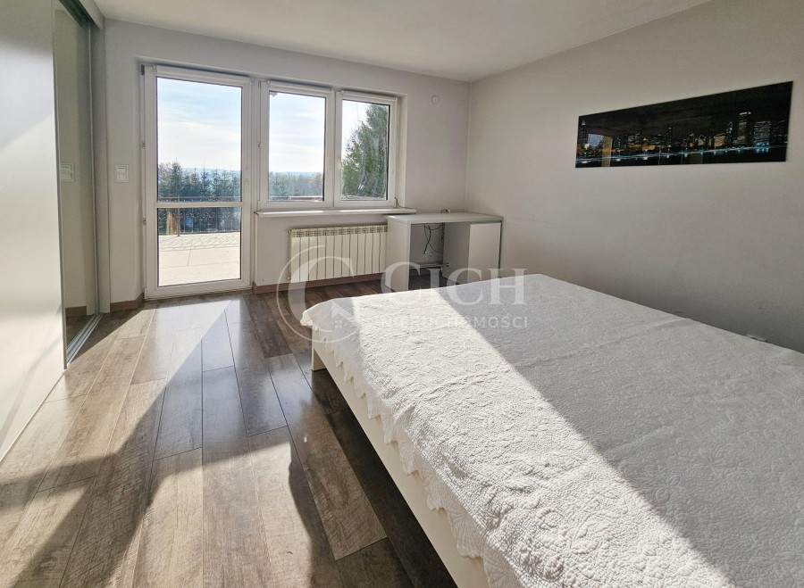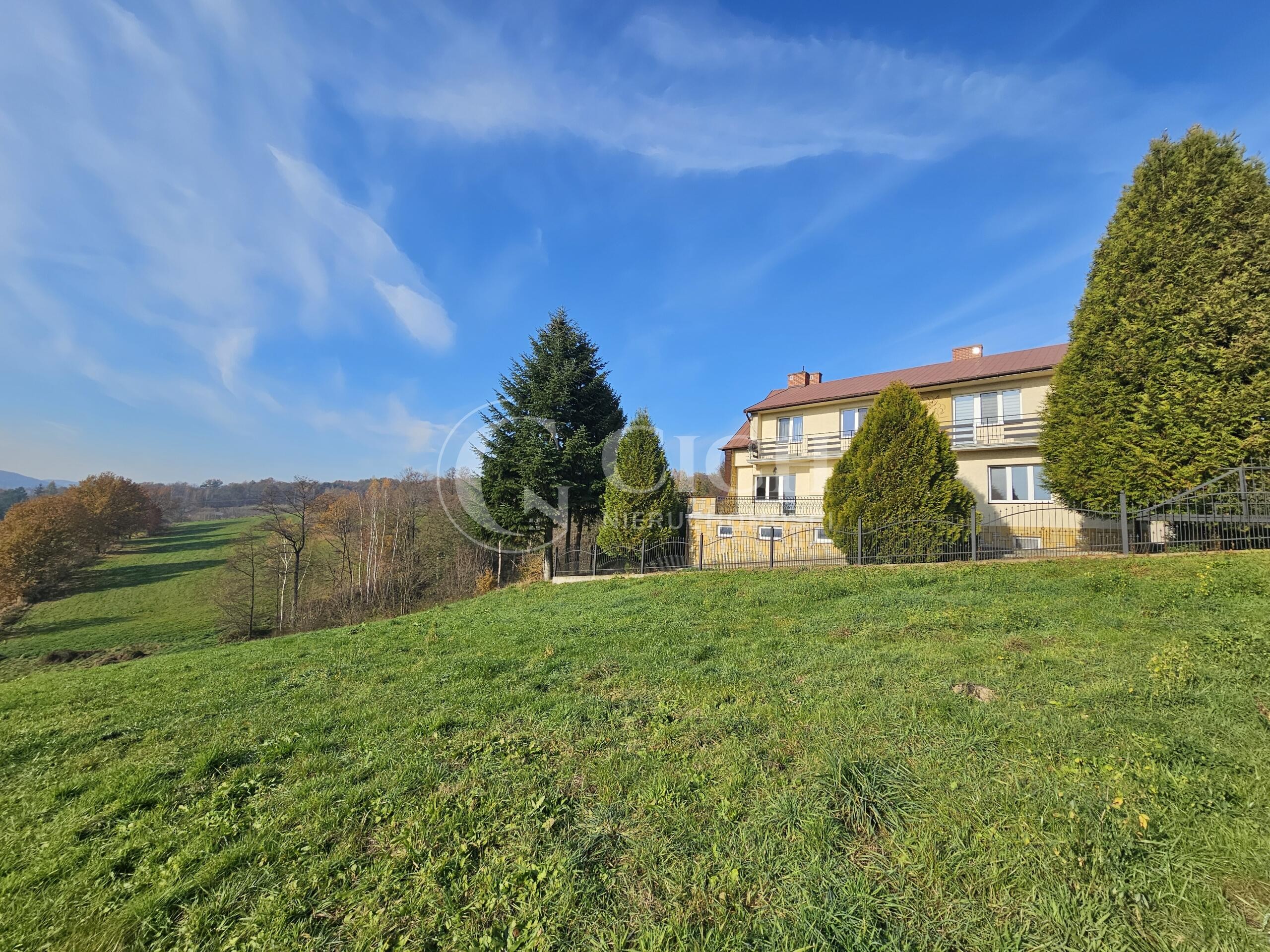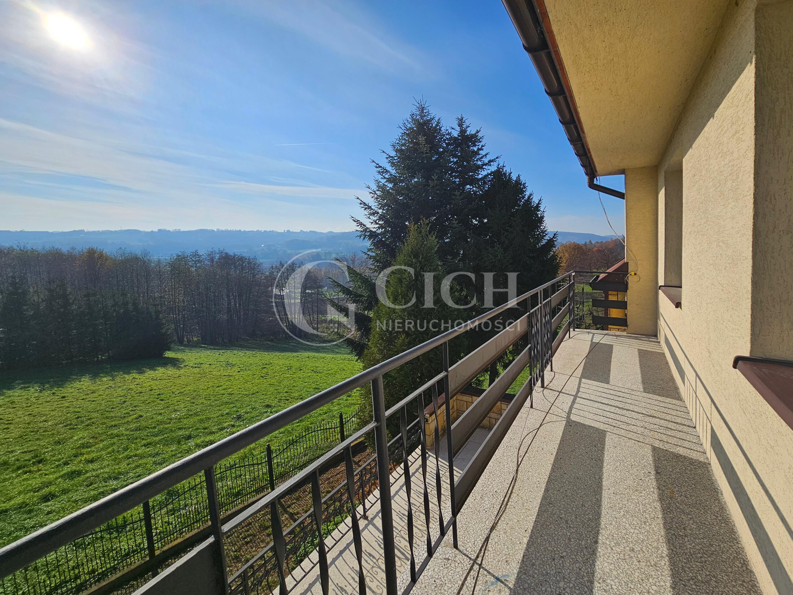 Zarówno z działki jak i obszernego tarasu i balkonu rozciąga się widok na pobliskie górki.