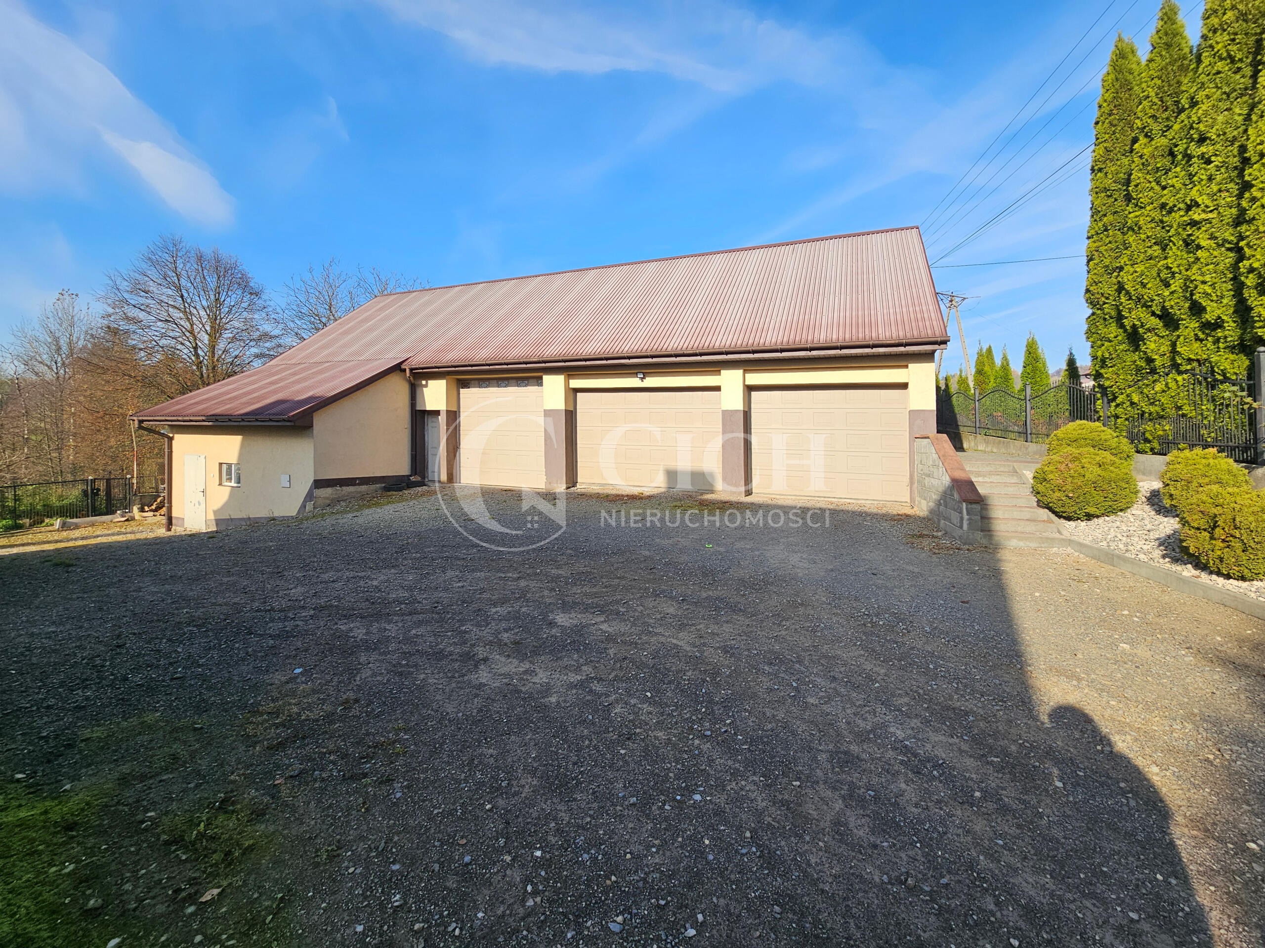 Na działce oprócz domu znajduje się budynek gospodarczy oraz garaże.