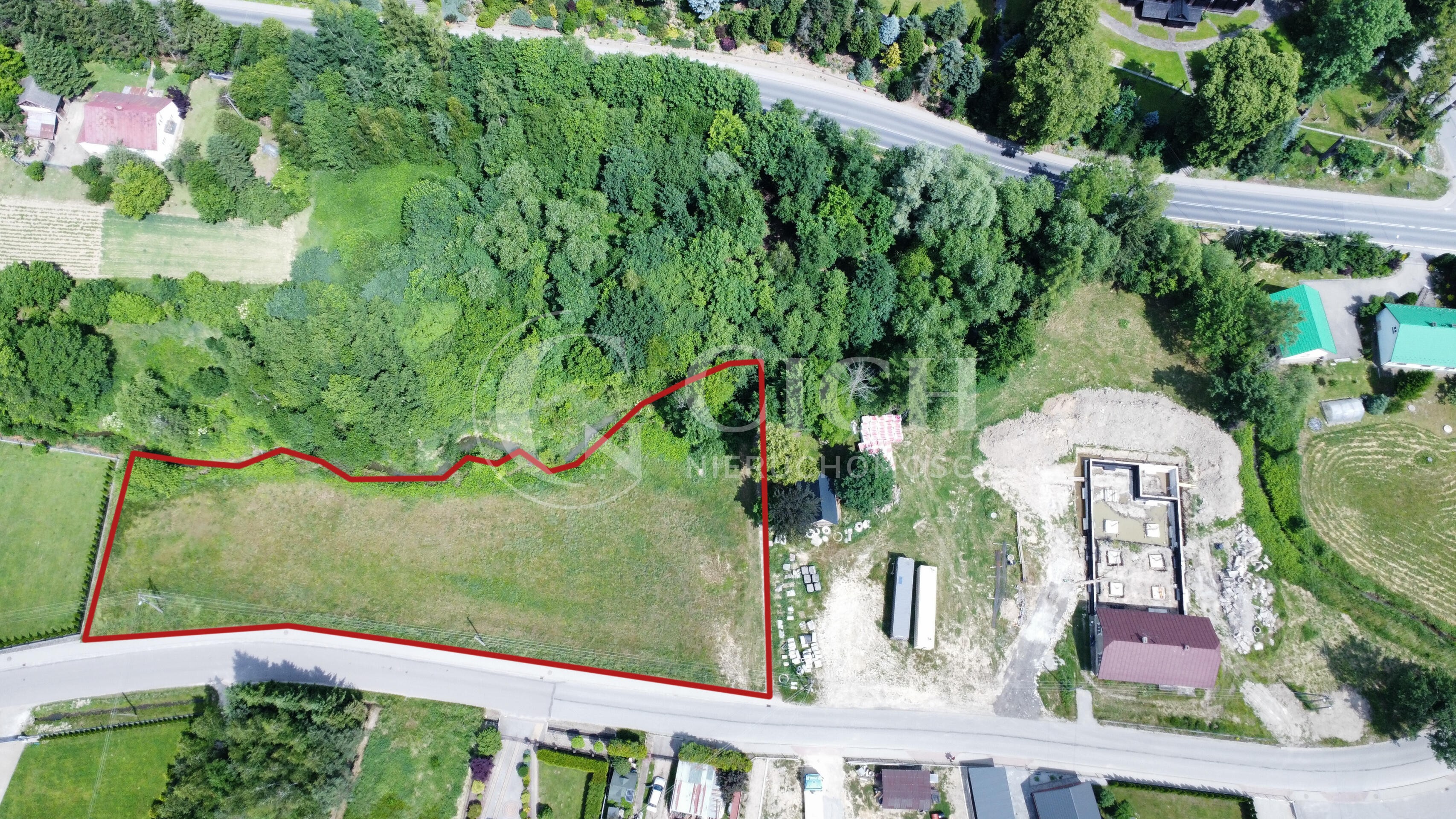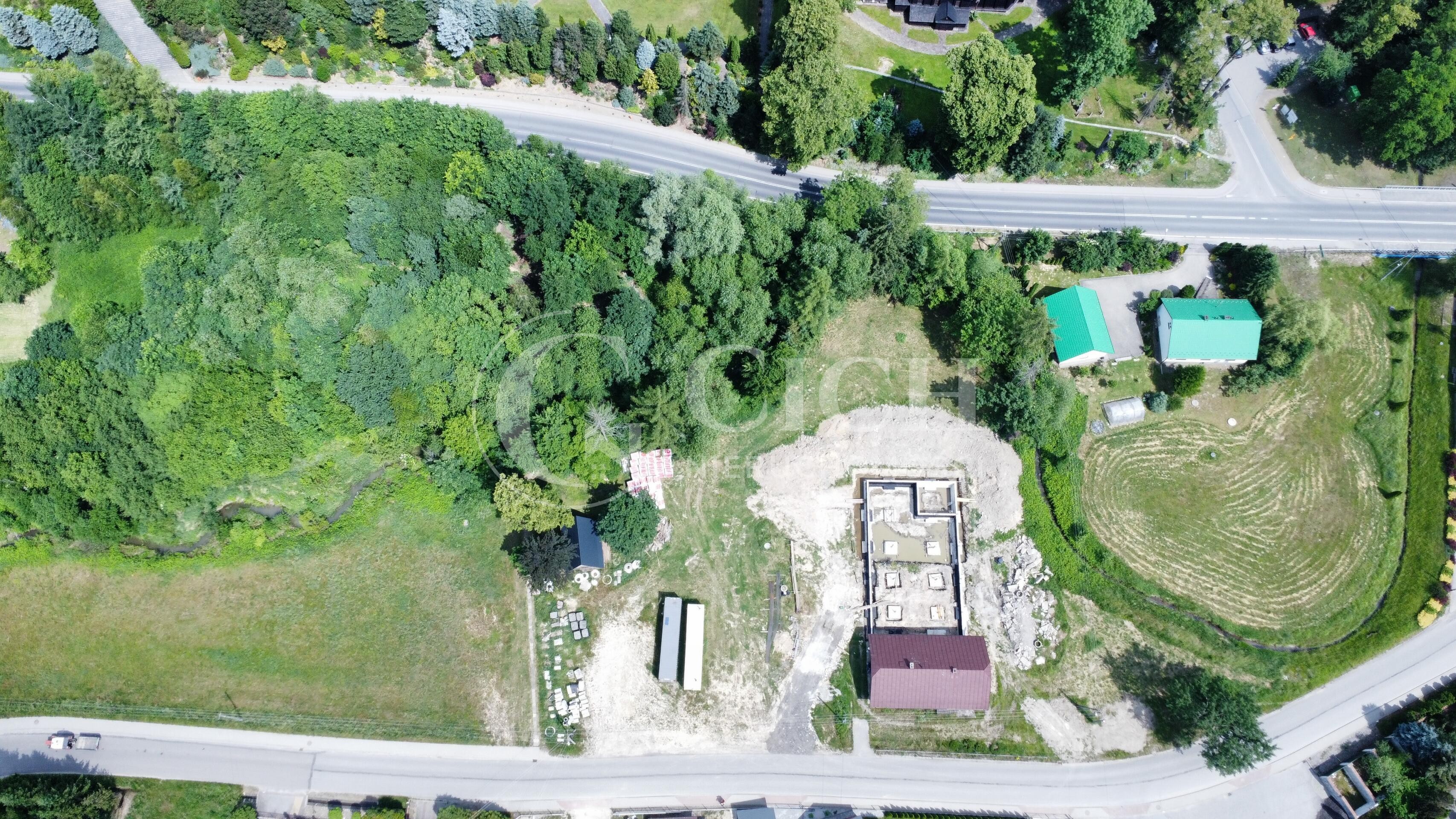 Naturalna granica działki jest strumyk w jej północnej części.